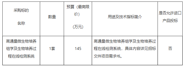 项目名称:南开大学生命科学学院高通量微生物培养组学及生物培养过程在线检测系统采购项目