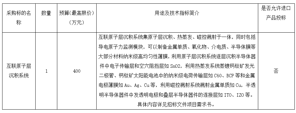 项目名称:南开大学化学学院互联原子层沉积系统采购项目