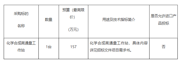 项目名称:南开大学化学学院化学合成高通量工作站采购项目