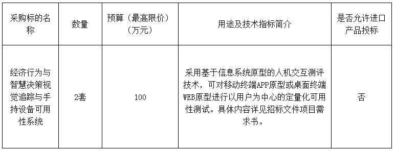 项目名称:南开大学经济学院经济行为与智慧决策视觉追踪与手持设备可用性系统采购项目